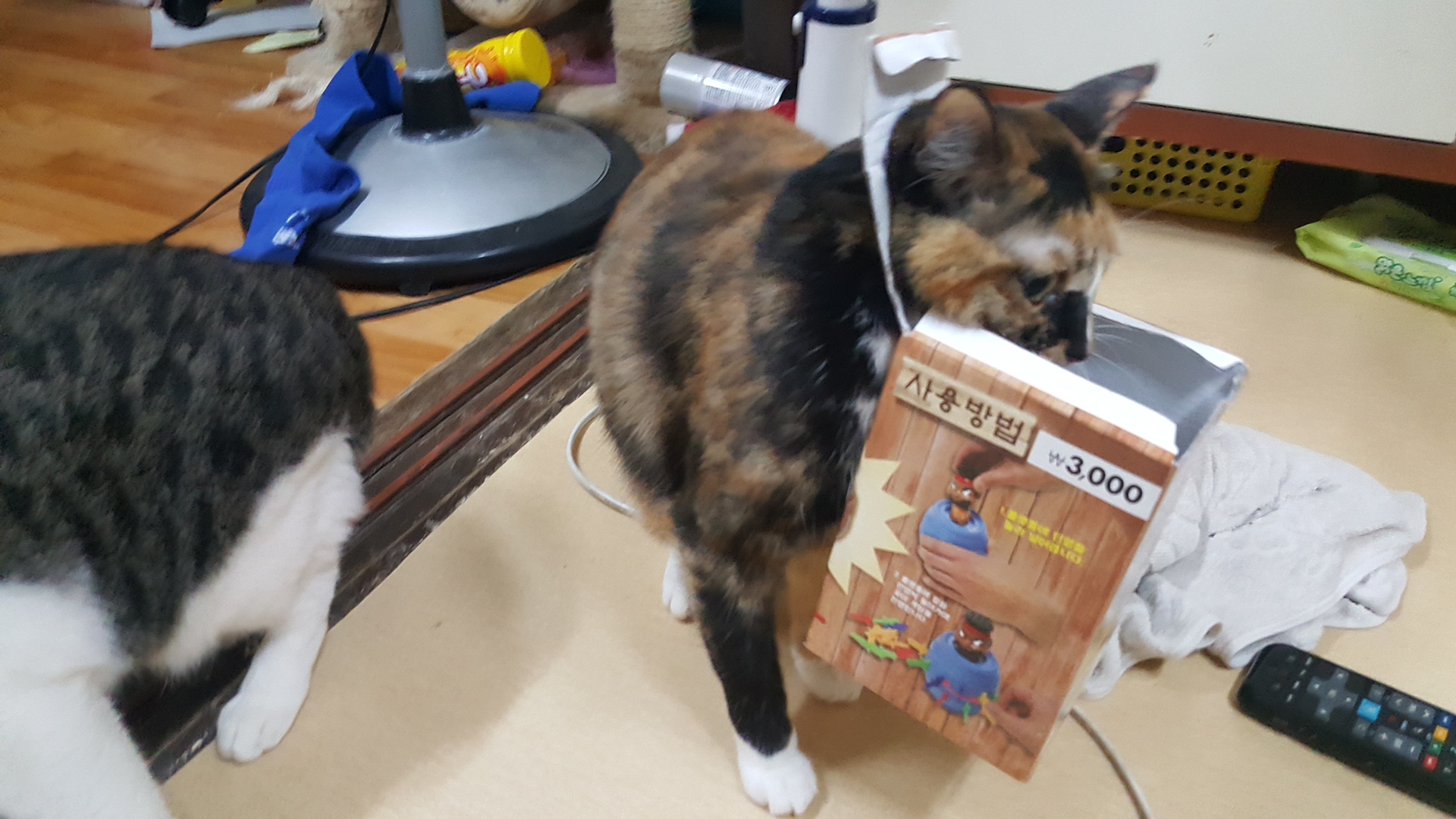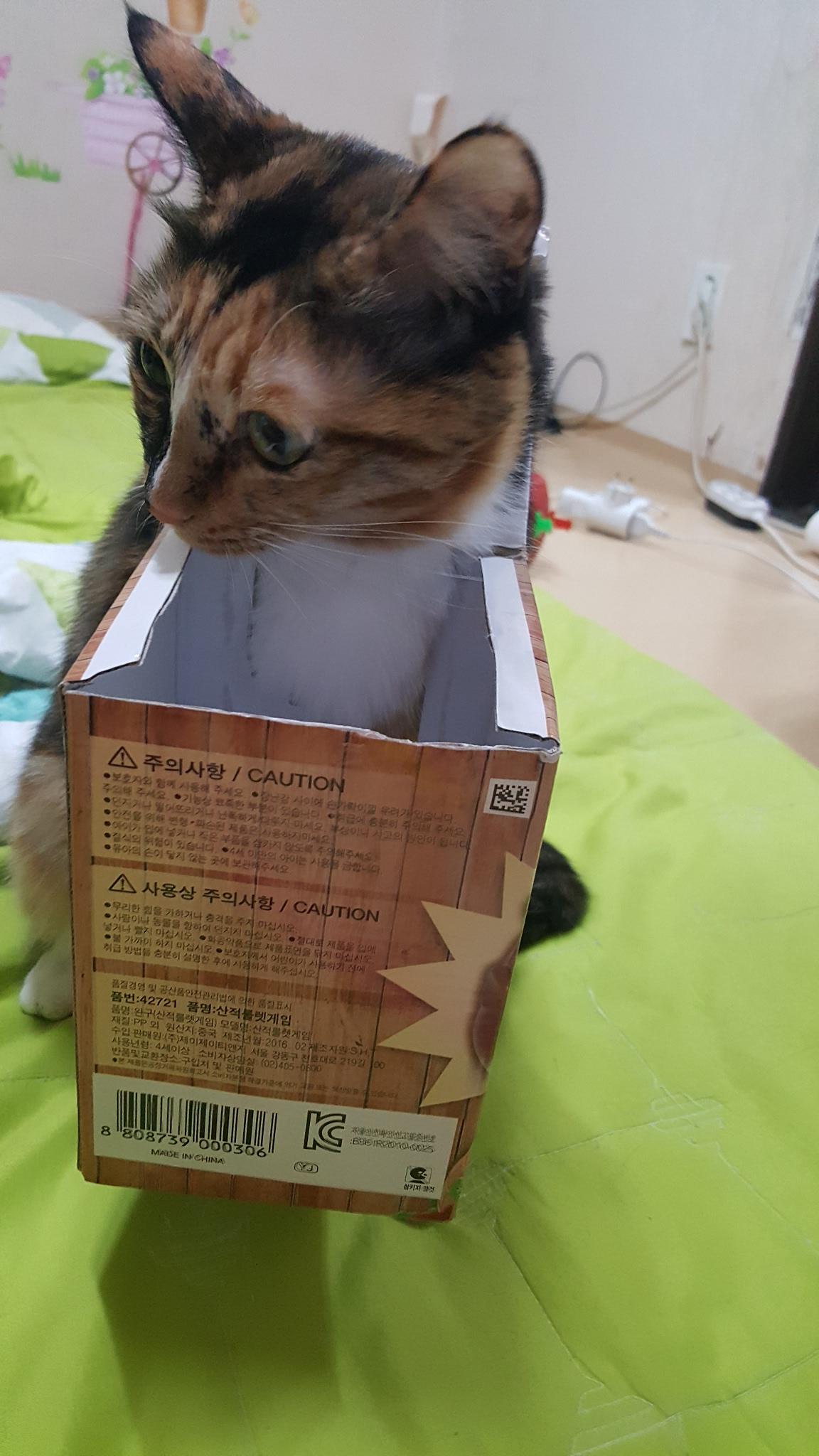 며칠 전, 나는 추억의 장난감인 통아저씨 게임을 집에 들여왔다. 어린 시절의 향수를 느껴보고 싶기도 하고, 고양이들과 함께라면 이걸로 새로운 콘텐츠도 만들어볼 수 있지 않을까 하는 기대도 있었다. 포장을 뜯고 박스에서 구성품을 꺼낸 뒤, 잠깐 거실 바닥에 상자를 두고 게임에 집중하고 있었던 그때…