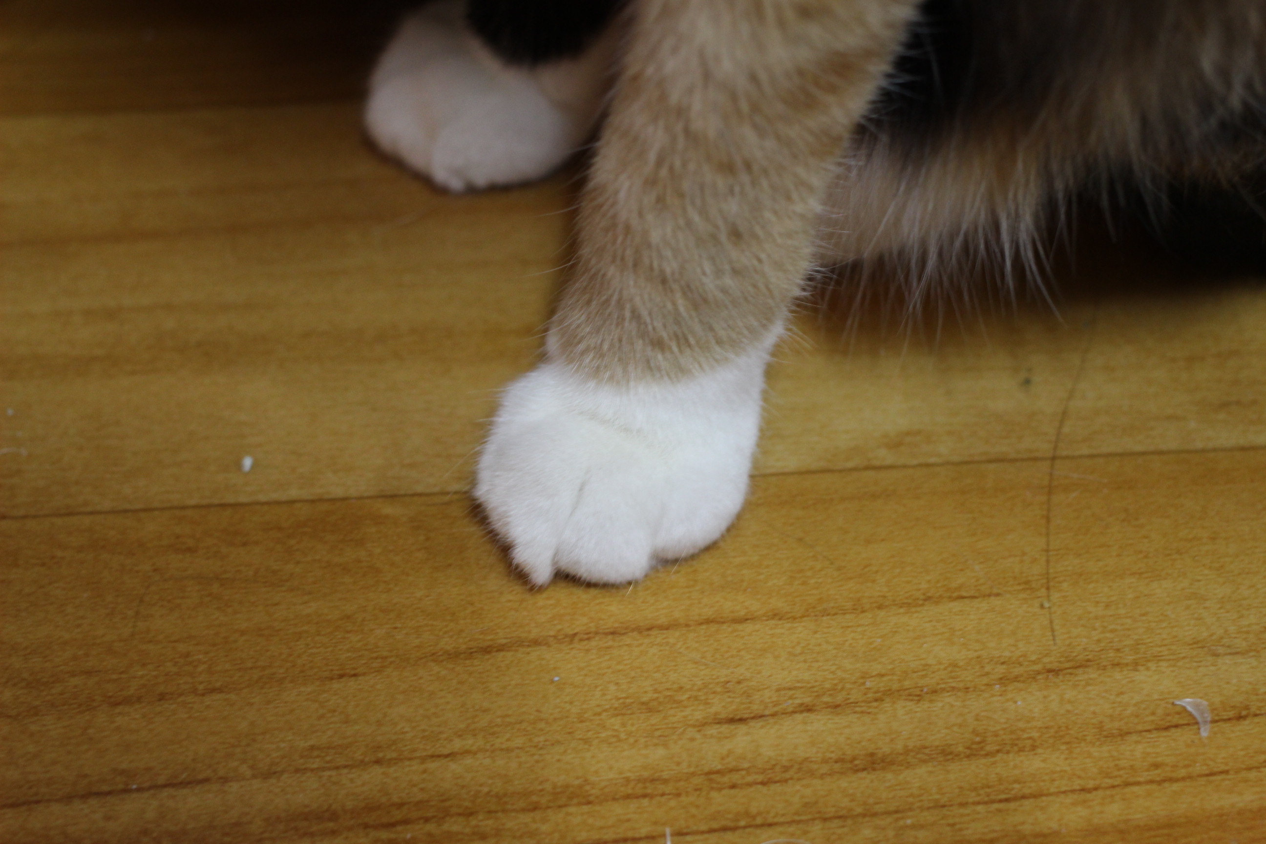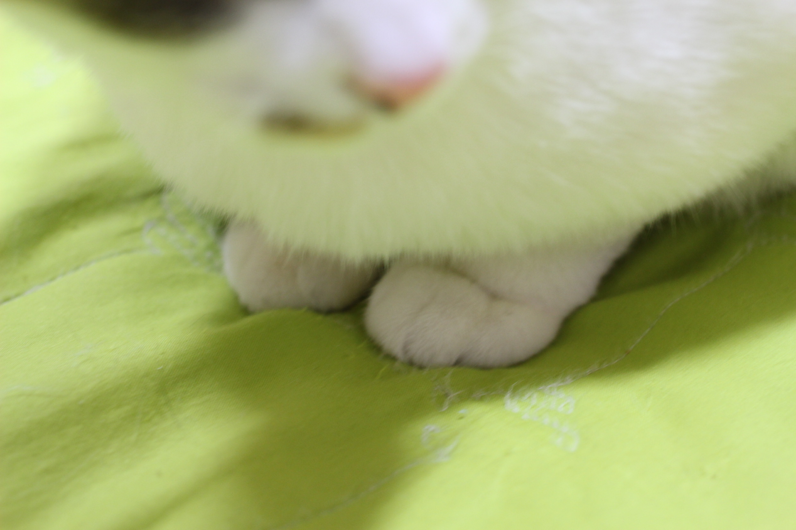 - 밤송이의 앞발은 작고 여리다. 체구가 작아 그런지, 마치 미니어처 찹쌀떡 같다. 앞발을 모으고 있으면 꼭 아기 인형 같은 분위기를 풍긴다. 나는 그 모습이 너무 사랑스러워서 클로즈업 사진을 수십 장이나 찍었다.