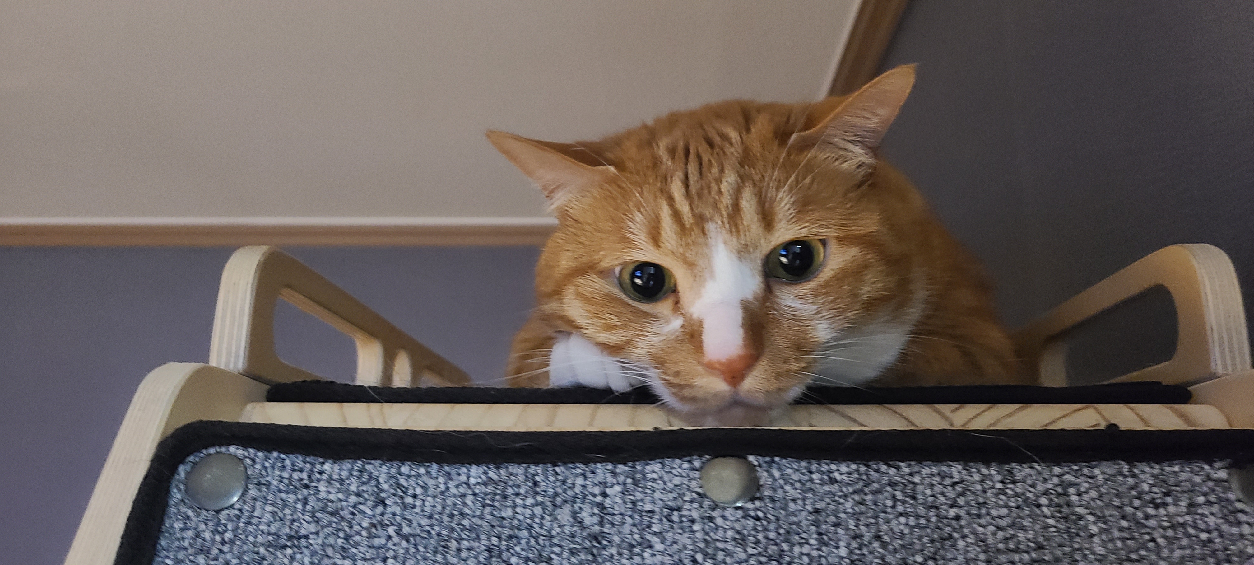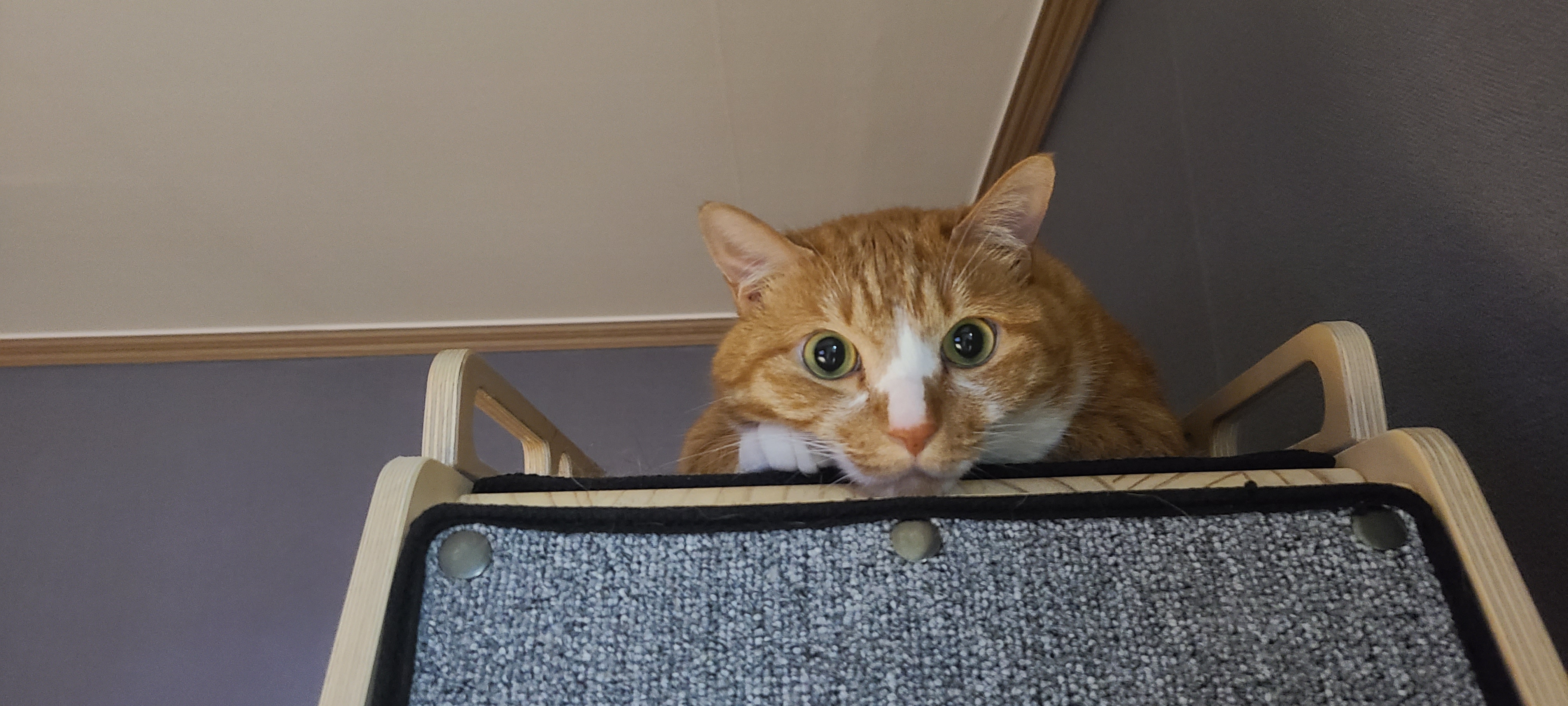 우리 집에서 캣타워의 진짜 주인은 단연 밤톨이다. 덩치도 크고, 성격도 당당한 첫째답게 캣타워 맨 위를 차지하는 일이 많다. 다른 아이들이 아래에서 놀거나 쉬고 있어도, 밤톨이는 꼭대기 층에 올라가 천천히 주위를 살핀다. 그 모습은 마치 왕좌에 앉은 듯 위엄이 느껴지기도 한다.
