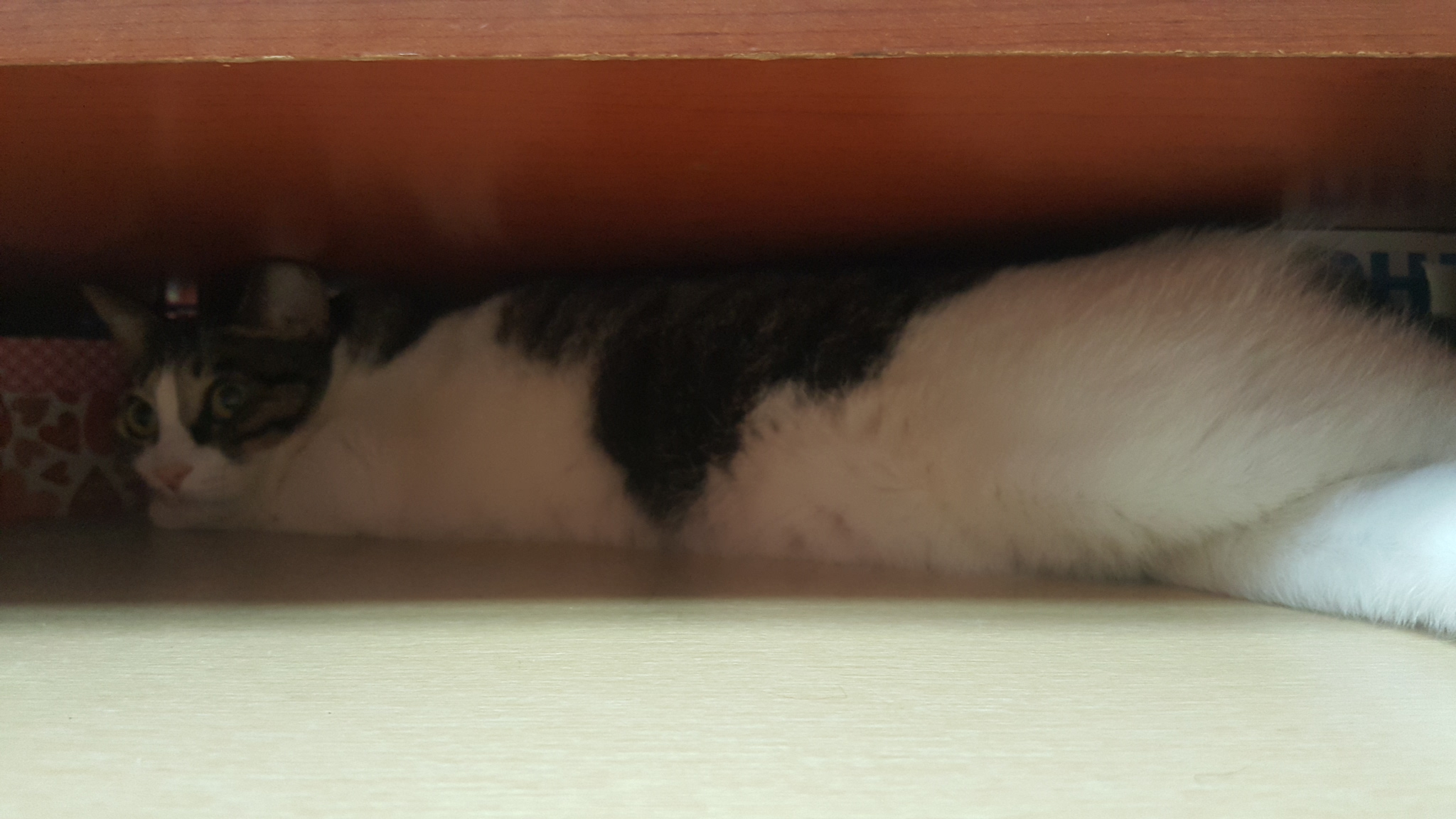 평소라면 먼지가 쌓일 공간인데, 밤순이가 들락날락하며 공간을 차지하니 서랍 밑이 몹시 깨끗해진다. 집사의 청소가 필요 없을 정도다.